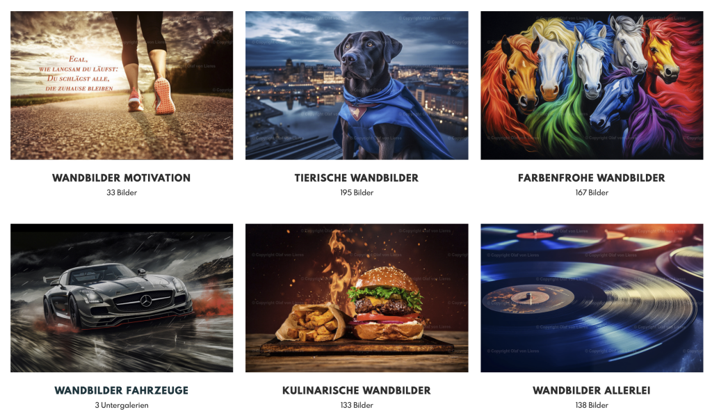 Hier können Sie viele unserer Fotos als hochwertiges Wandbild in vielen Ausführungen und Größen bestellen.